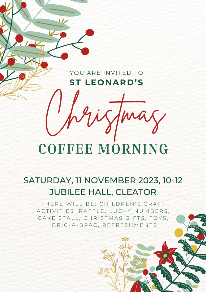featured, this weekChristmas Coffee Morning, St Leonard’s, Cleator 10 November 202330 November 2023 Karl Möller